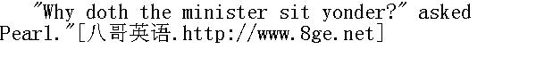 牧师干嘛坐在那儿?"珠儿问。 "He waits to welcome thee," replied her mother. "Come thou, and entreat his blessing! He loves thee, my little Pearl, and loves thy mother too. Wilt thou not love him? Come! he longs to greet thee!"" 他等着欢迎你呢,"她母亲回答。"你过来,恳求他的祝福吧!他爱你,我的小珠儿,而且也爱你妈妈。难道你不肯爱他吗?来啊!他可想问候你呢!" "Doth he love us?" said Pearl, looking up, with acute intelligence, into her mother's face. "Will he go back with us, hand in hand, we three together into the town?"" 他爱我们吗?"珠儿说着,目光中流露出明察秋毫的聪慧,抬起眼睛瞅着她母亲的面孔。"他会跟我们手拉着手一起回去--我们三个人一起进镇子去吗?" "Not now, dear child," answered Hester. "But in days to come he will walk hand in hand with us. We will have a home and fireside of our own; and thou shalt sit upon his knee; and he will teach thee many things, and love thee dearly. Thou wilt love him; wilt thou not?"" 这会儿还不成,我的乖孩子,"海丝特回答说。"但是在未来的日子里,他会跟我们手拉手地一起走的。我们会有我们的一个家和壁炉;你呢,将要坐在他的膝头;而他会教给你许多事情,会亲亲热热地爱你。你也会爱他的;不是吗?" "And will he always keep his hand over his heart?" inquired Pearl. " 那他还会用手捂着心口吗?"珠儿探询着。
