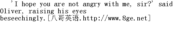 喏,老绅士步履轻快地走了进来,这是可想而知的,但不多一会儿,他便把眼镜支到额头上,双手反插在晨衣后摆里,久久地,仔仔细细地端详起奥立弗来,脸上出现种种奇怪的抽动。大病初愈的奥立弗显得非常樵瘁,一副弱不禁风的样子。出于对恩人的尊敬,他强打精神想站起来,结果还是没能站稳,又跌坐在椅子上。事实上,如果一定要实话实说,布朗罗先生胸襟十分宽阔,比起一般心地慈善、气质淳厚的绅士来,他一个当得上六个。他的心通过某种水压作用将两汪热泪送进了他的眼眶,说起这种程序,由于我们在哲学方面不能算是博大精深,是无法作出解释的。 'Poor boy, poor boy!' said Mr. Brownlow, clearing his throat. 'I'm rather hoarse this morning, Mrs. Bedwin. I'm afraid I have caught cold.' “可怜的孩子,可怜的孩子。”布朗罗先生说着清了清喉咙。“贝德温太太,今天早晨我声音有点沙哑,恐怕是伤风了。” 'I hope not, sir,' said Mrs. Bedwin. 'Everything you have had, has been well aired, sir.' “但愿不是,先生,”贝德温太太说道,“你所有的衣服都是晾干了的,先生。” 'I don't know, Bedwin. I don't know,' said Mr. Brownlow; 'I rather think I had a damp napkin at dinner-time yesterday; but never mind that. How do you feel, my dear?' “不知道,贝德温,不知道怎么搞的,”布朗罗先生说道,“我倒宁可认为是因为昨天吃晚饭用了一张潮湿的餐巾,不过没关系。你感觉怎么样,我的孩子?” 'Very happy, sir,' replied Oliver. 'And very grateful indeed, sir, for your goodness to me.' “很快活,先生,”奥立弗回答,“您对我太好了,先生,真不知道怎么感谢您。”