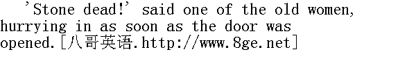 “那个当妈的,”病人说话比先前更吃力了,“那个当妈的,死亡的痛苦一来到她身上,她就凑在我耳边小声说,只要她的宝宝活着生下来,还能长大的话,那一天总会来的,到时候他听到人家提起自己苦命的小妈妈是不会感到丢脸的。‘噢,仁慈的上帝啊!’她两只瘦丁丁的手交叉在一块儿,说,‘不管是男孩还是姑娘,在这个乱糟糟的世道上,你总得替这孩子安排几个好人,你得可怜一个孤苦伶丁的孩子,不能扔下不管啊!”’ 'The boy's name?' demanded the matron. “那孩子叫什么名字?” 'They CALLED him Oliver,' replied the woman, feebly. 'The gold I stole was--' “他们叫他奥立弗,”病人有气无力地回答,“我把金首饰给偷走了,是--” 'Yes, yes--what?' cried the other. “对呀,对呀--是什么东西?”对方大叫一声。 She was bending eagerly over the woman to hear her reply; but drew back, instinctively, as she once again rose, slowly and stiffly, into a sitting posture; then, clutching the coverlid with both hands, muttered some indistinct sounds in her throat, and fell lifeless on the bed. 她急迫地向老太婆弯下腰来,想听到她的回答,又本能地缩了回去。老婆子再一次缓慢而僵硬地坐起来,双手紧紧抓住床单,喉咙里咕嘟咕嘟地发出几声含混不清的声音,倒在床上不动了。
